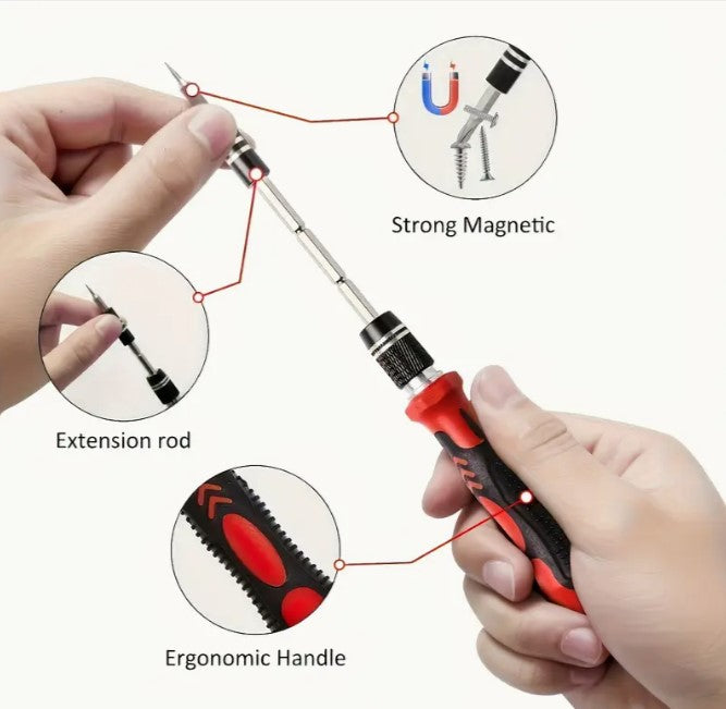 Este kit de herramientas es ideal para la reparación de dispositivos electrónicos y otros artículos de precisión. Con una amplia variedad de puntas imantadas y un estuche resistente, es una opción completa y confiable para técnicos y aficionados al bricolaje.